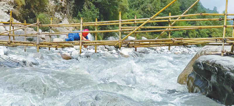 四川省青年應(yīng)急志愿服務(wù)總隊(duì)雷波大隊(duì)隊(duì)員們搭建鋼架橋。本版圖片均由受訪(fǎng)者提供