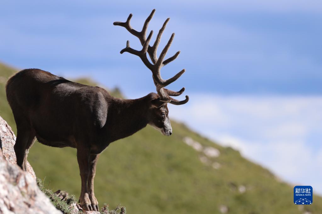 這是在青海省玉樹(shù)藏族自治州雜多縣境內(nèi)的昂賽大峽谷拍攝的白唇鹿(8月5日攝)。新華社發(fā)(達(dá)杰朋措 攝)