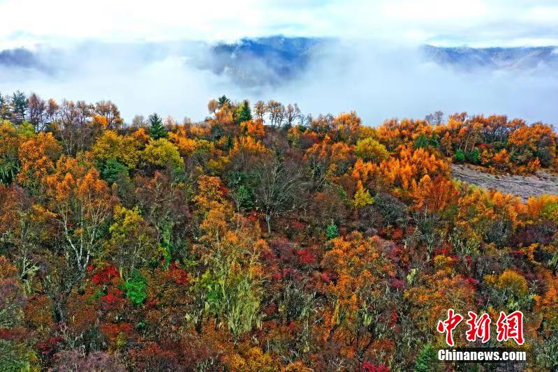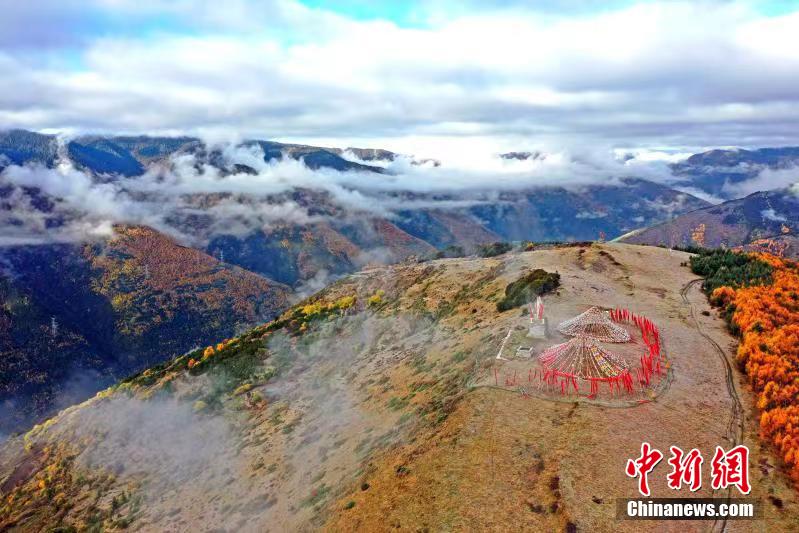 深秋時(shí)節(jié),四川馬爾康市馬爾康鎮(zhèn)阿底村賽馬山迎來(lái)彩林觀賞的最佳季節(jié)。放眼望去,海拔3500米的賽馬山上彩林連綿延伸至茫茫云海,遠(yuǎn)方雪山四面環(huán)繞,宛如仙境一般。阿壩州文體旅游局供圖