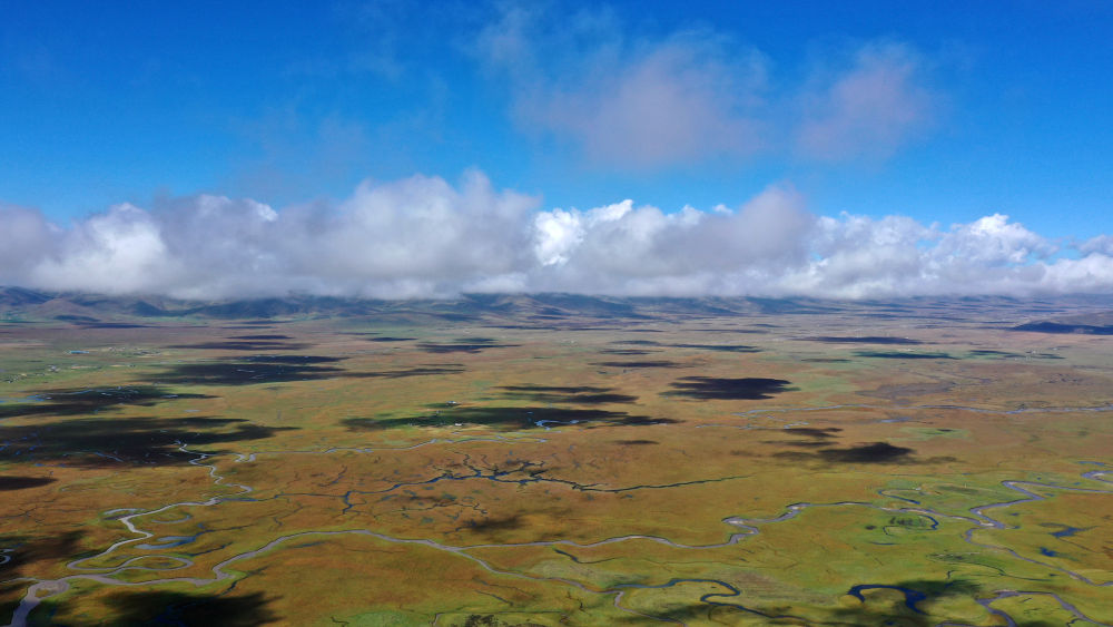 深秋,從空中俯瞰平均海拔3500多米的瑪曲濕地,大大小小的湖泊如珍珠般灑落在草原上,上萬(wàn)只候鳥(niǎo)在這里安心度過(guò)繁殖季,準(zhǔn)備飛往南方過(guò)冬。