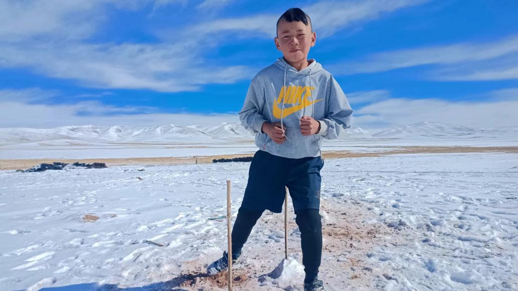 今年六年級的多果,是玉樹州曲麻萊縣第二民族完全小學的學生,微信名稱叫“愛踢球的男孩”,性格靦腆害羞,說起足球,滔滔不絕,黝黑的臉蛋上泛著紅光,12歲的他個頭不高,和隊友站在一起略顯瘦削,但一到場上他就成了機敏的精靈。還記得第一次踢足球時的場景,那是一個陽光明媚的午后,雪山下的草地上,五六個小伙伴一起,一踢就是一下午。