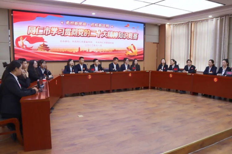 圖為青海省黃南州同仁市舉辦以“勇?lián)率姑⒑叫抡鞒獭睘橹黝}的黨的二十大精神知識競賽 圖片來源:今日同仁