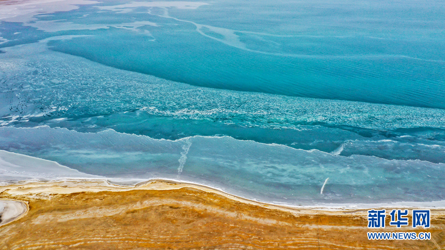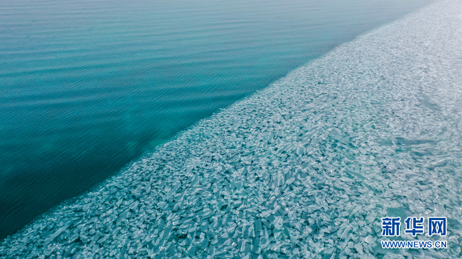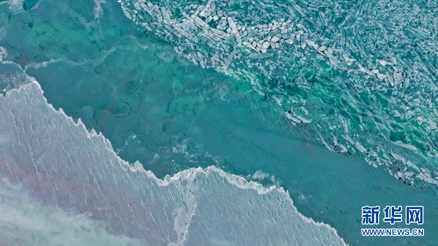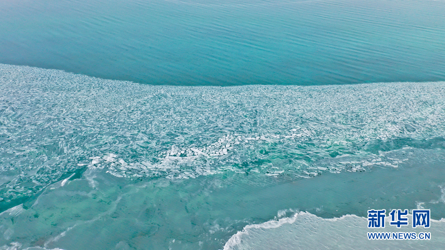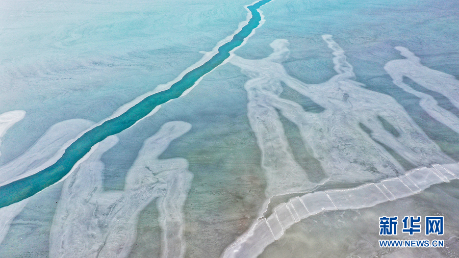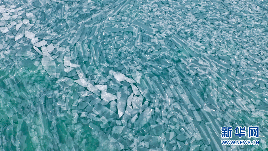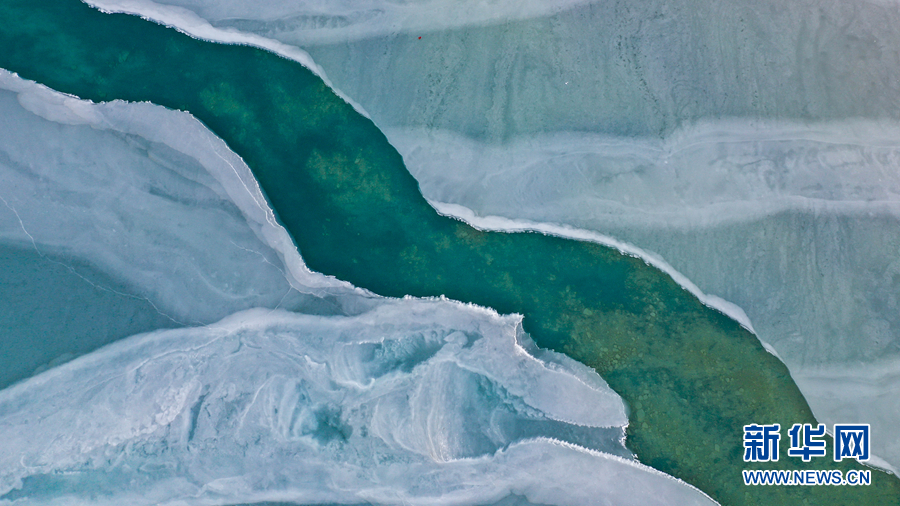 封凍的湖面如同破碎的“玉帶”,形成獨特的景觀。新華網 宋忠勇 攝