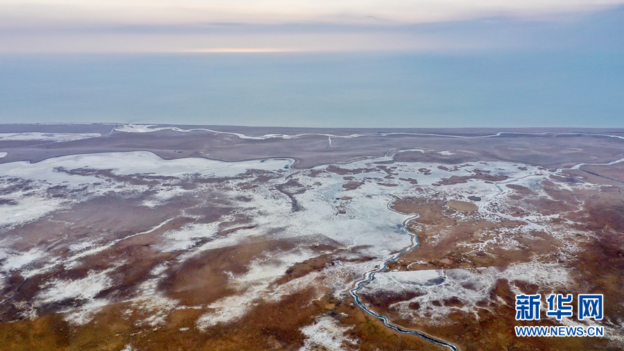 圖為12月10日航拍的冬日青海湖。新華網 宋忠勇 攝