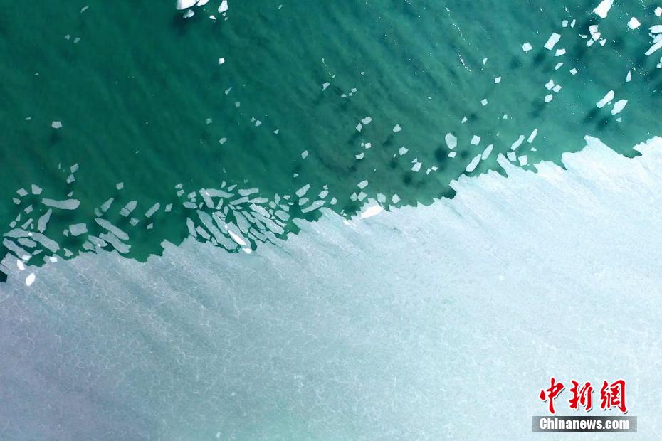 近日,素有“高原藍(lán)寶石”之稱(chēng)的青海湖開(kāi)始進(jìn)入冰封期。青海湖水體周邊的零星結(jié)冰,青海湖西部邊緣、北部湖岸區(qū)、鳥(niǎo)島、青海湖斷崖等地出現(xiàn)成片結(jié)冰區(qū)。航拍畫(huà)面中可以看到湖心范圍尚有大面積未結(jié)冰區(qū)域。青海湖是中國(guó)最大的內(nèi)陸咸水湖。冬日里的青海湖,寧?kù)o而內(nèi)斂。千里冰封,宛如童話(huà)世界。封凍的湖面如同破碎的“玉帶”,形成獨(dú)特的景觀。張世偉 攝