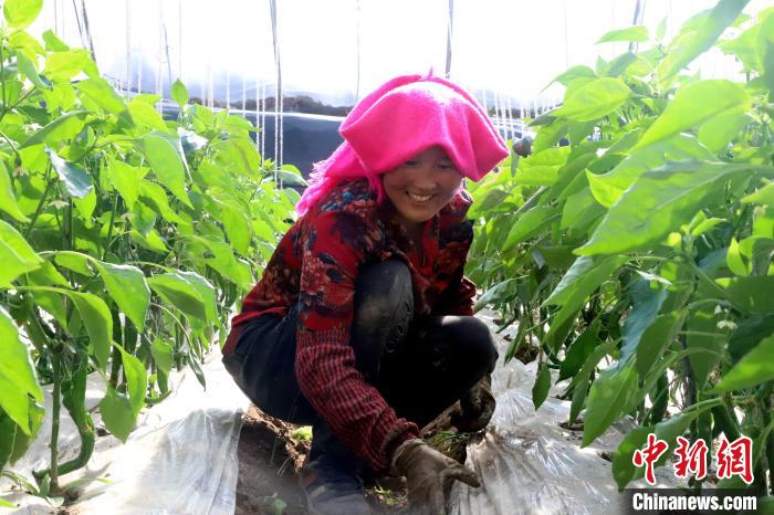 圖為農(nóng)戶在農(nóng)業(yè)基地里工作?!s藏措 攝
