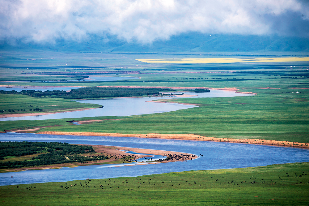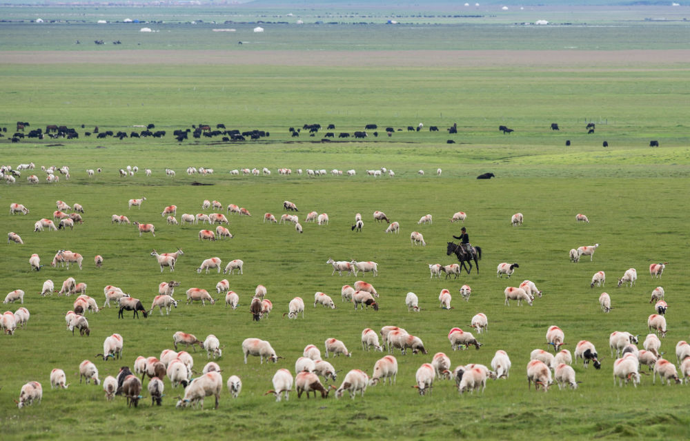牛羊徜徉在四川若爾蓋濕地國家級(jí)自然保護(hù)區(qū)里(2022年7月25日攝)。新華社 江宏景 攝