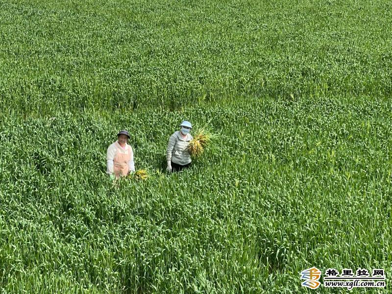 香格里拉市尼西鄉(xiāng)幸福村冬小麥、冬播油菜長(zhǎng)勢(shì)喜人,田間地頭一片綠油油的景象。圖為村民正在田里除草。