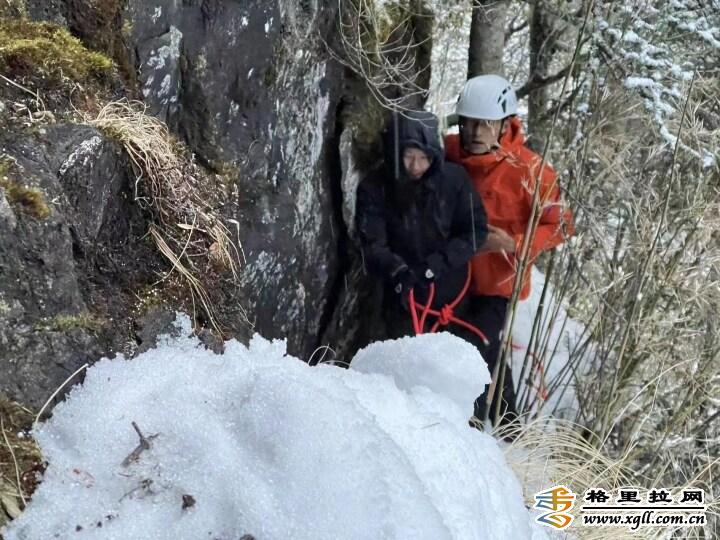經(jīng)過1小時車程和2小時蜿蜒陡峭爬行,消防救援人員于18時02分到達(dá)現(xiàn)場并迅速展開救援行動。 經(jīng)過現(xiàn)場偵查,發(fā)現(xiàn)2名游客被困于近90度的懸崖上,1名游客面部有輕微擦傷,被困已近5小時。由于被困崖壁近乎垂直,可操作空間極度有限,經(jīng)過半個多小時的營救,被困人員被成功救出并轉(zhuǎn)移至安全地帶,調(diào)整狀態(tài)后在整個救援隊伍的護(hù)送下安全抵達(dá)雨崩上村。