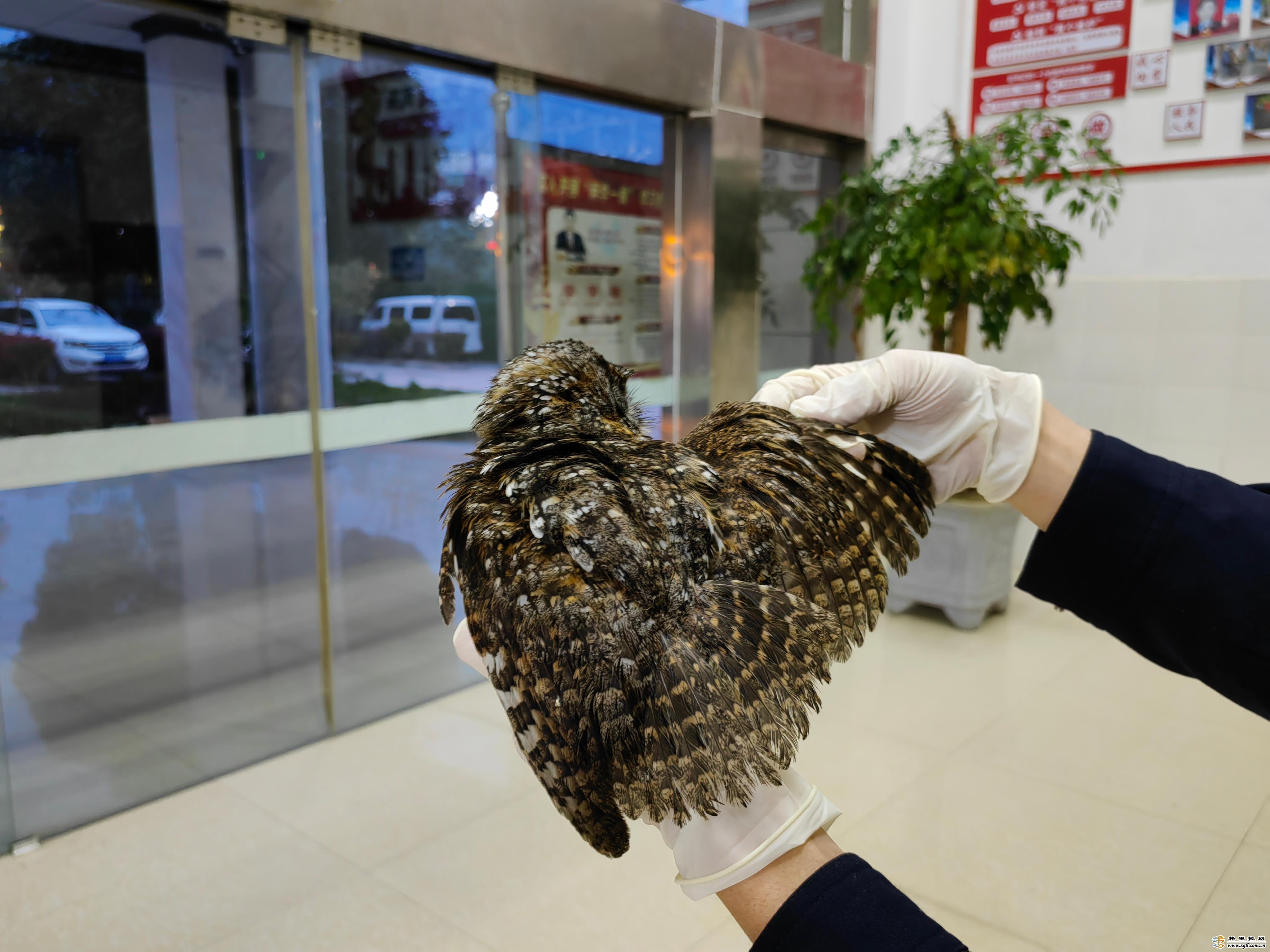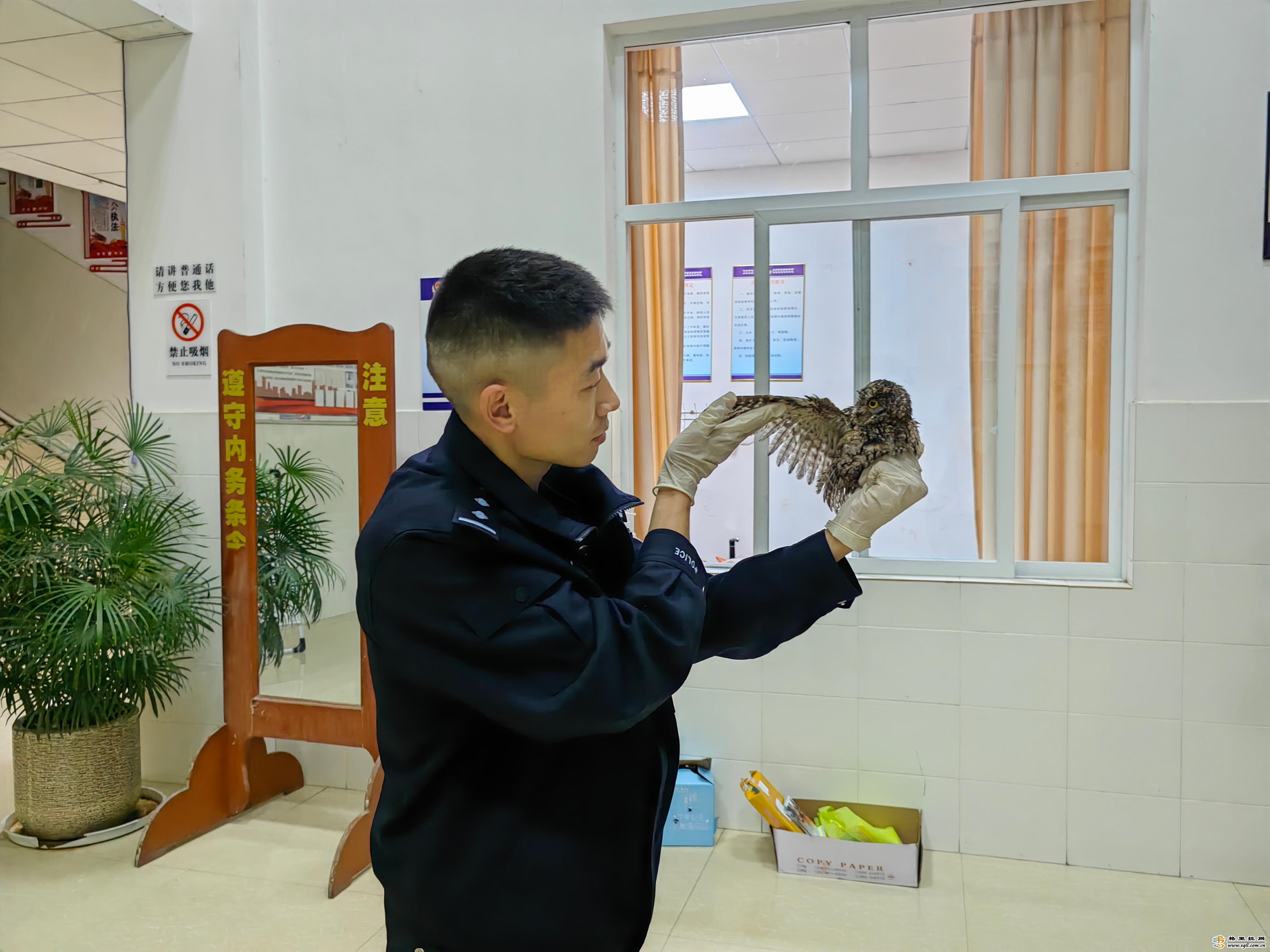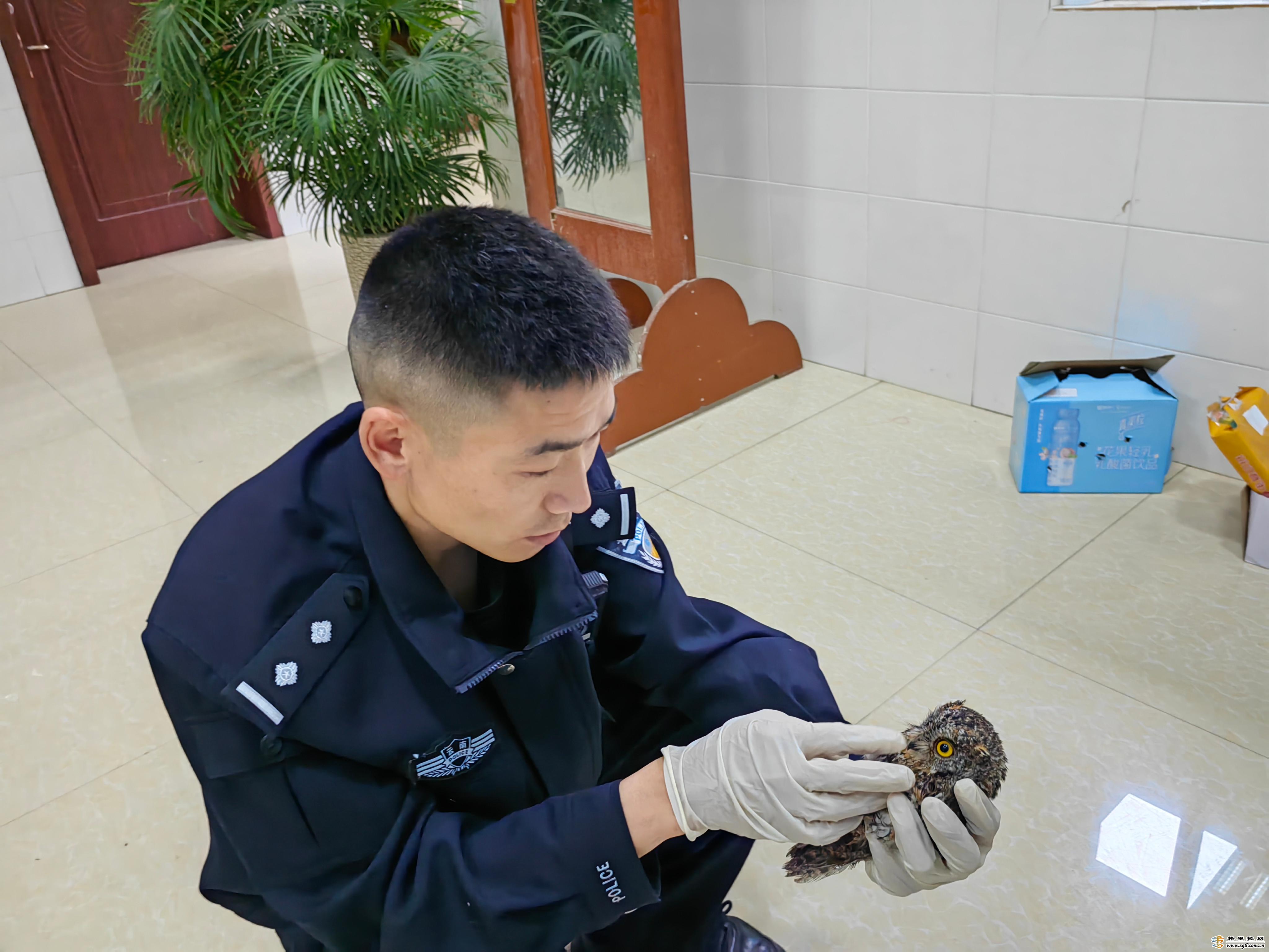 經(jīng)民警仔細(xì)查看并咨詢相關(guān)林業(yè)專業(yè)人員,確定這是一只紅角鸮,屬國家二級野生保護(hù)動物,因部分羽毛是濕的,故無法飛行。當(dāng)晚,民警待其羽毛干透后再次進(jìn)行了仔細(xì)檢查,未發(fā)現(xiàn)體表傷,具備放生條件,于是民警將該紅角鸮帶至野外進(jìn)行了放生。