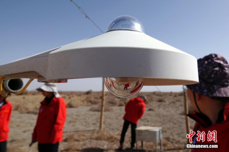圖為看上去貌似燈泡的科研設(shè)備,其實(shí)是觀測(cè)站用于研究地氣相互作用的短波輻射通量的觀測(cè)探頭。中新社記者 孫自法 攝