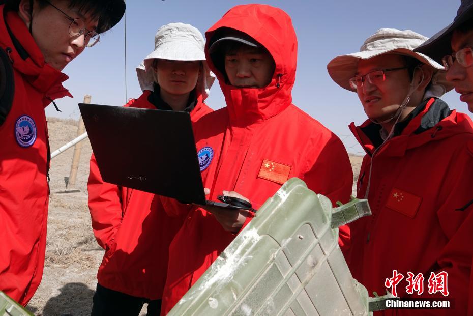 觀測(cè)站現(xiàn)場(chǎng),第二次青藏科考隊(duì)員、中科院空天院團(tuán)隊(duì)一行現(xiàn)場(chǎng)查看觀測(cè)數(shù)據(jù)。中新社記者 孫自法 攝