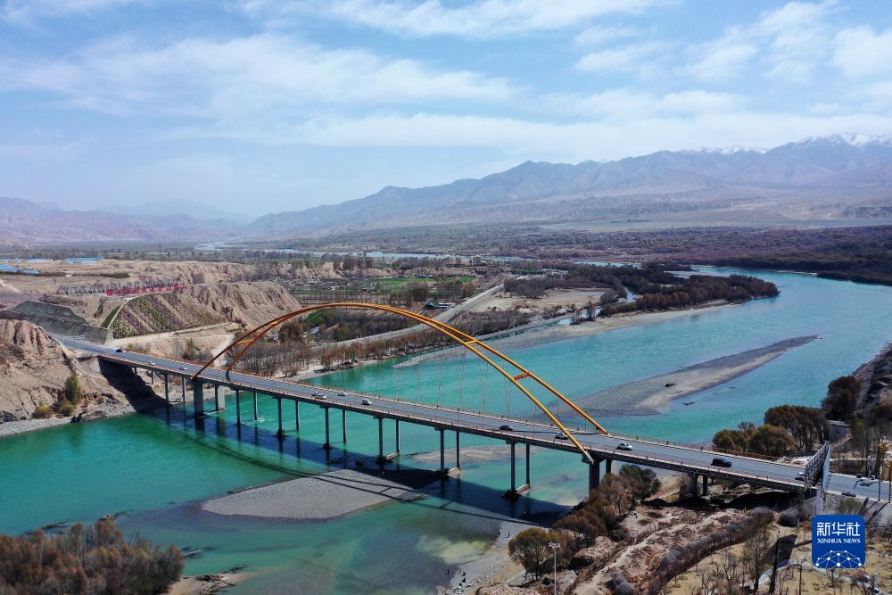 4月9日,車輛從大橋上駛過(無人機(jī)照片)。新華社記者 耿輝凰 攝