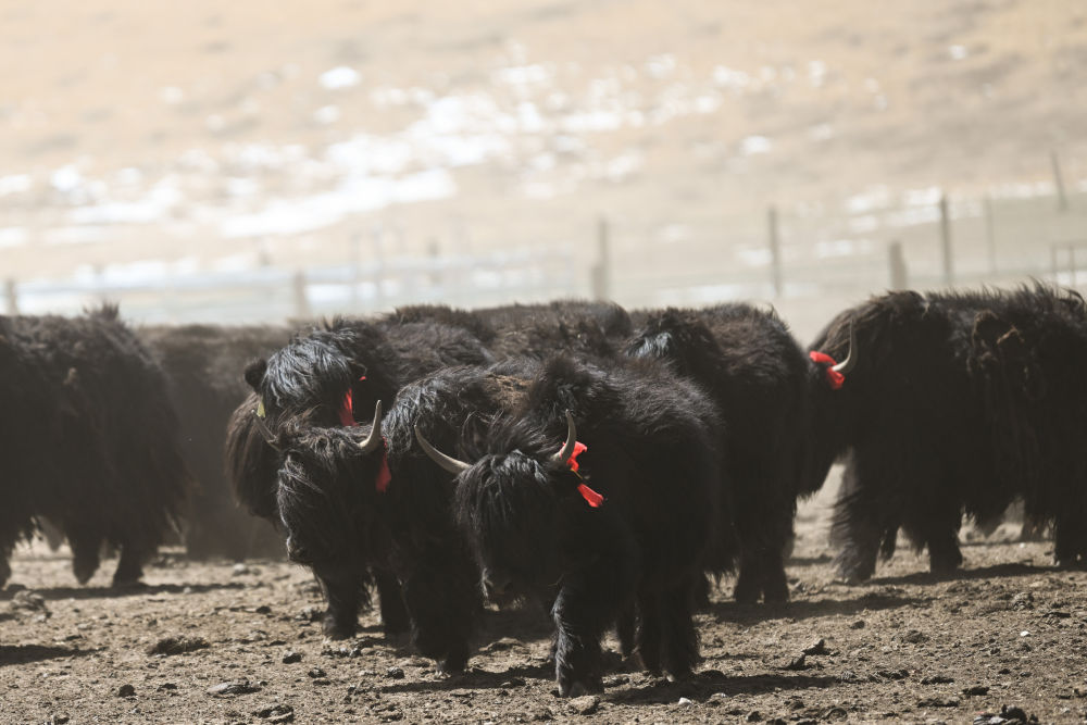 這是4月14日拍攝的剛察縣環(huán)湖型牦牛良種繁育基地內(nèi)的環(huán)湖型長毛牦牛。新華社記者 張龍 攝