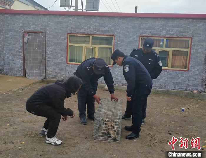 圖為民警與管護(hù)員查看獵隼傷勢(shì)。稱多縣公安局森林警察大隊(duì)供圖