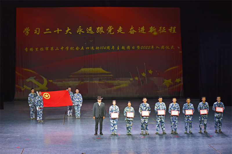 在文藝匯演前,學(xué)校為8位優(yōu)秀團(tuán)員頒發(fā)證書(shū),并舉行了紀(jì)念五四運(yùn)動(dòng)104周年主題團(tuán)日暨2023年入團(tuán)儀式,65名新團(tuán)員佩戴團(tuán)徽莊嚴(yán)宣誓。[詳細(xì)]