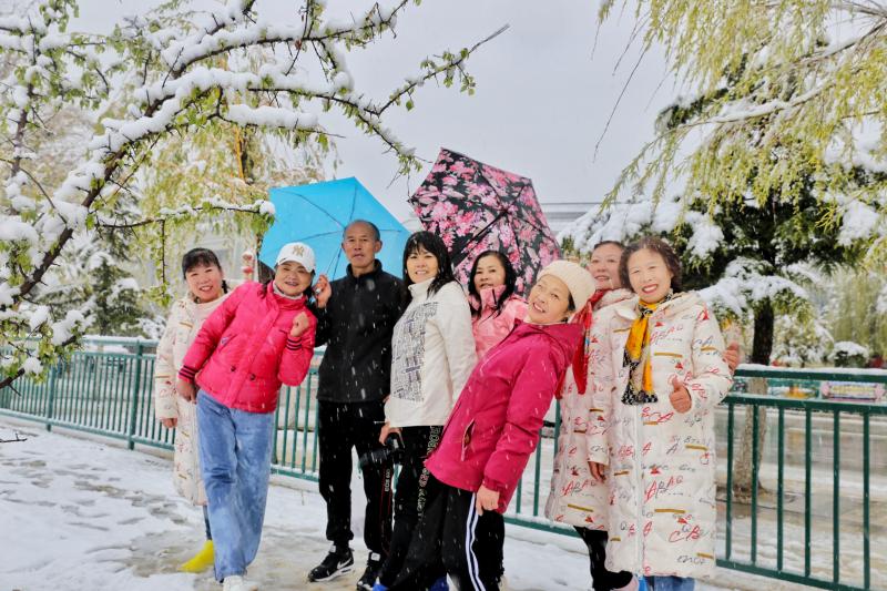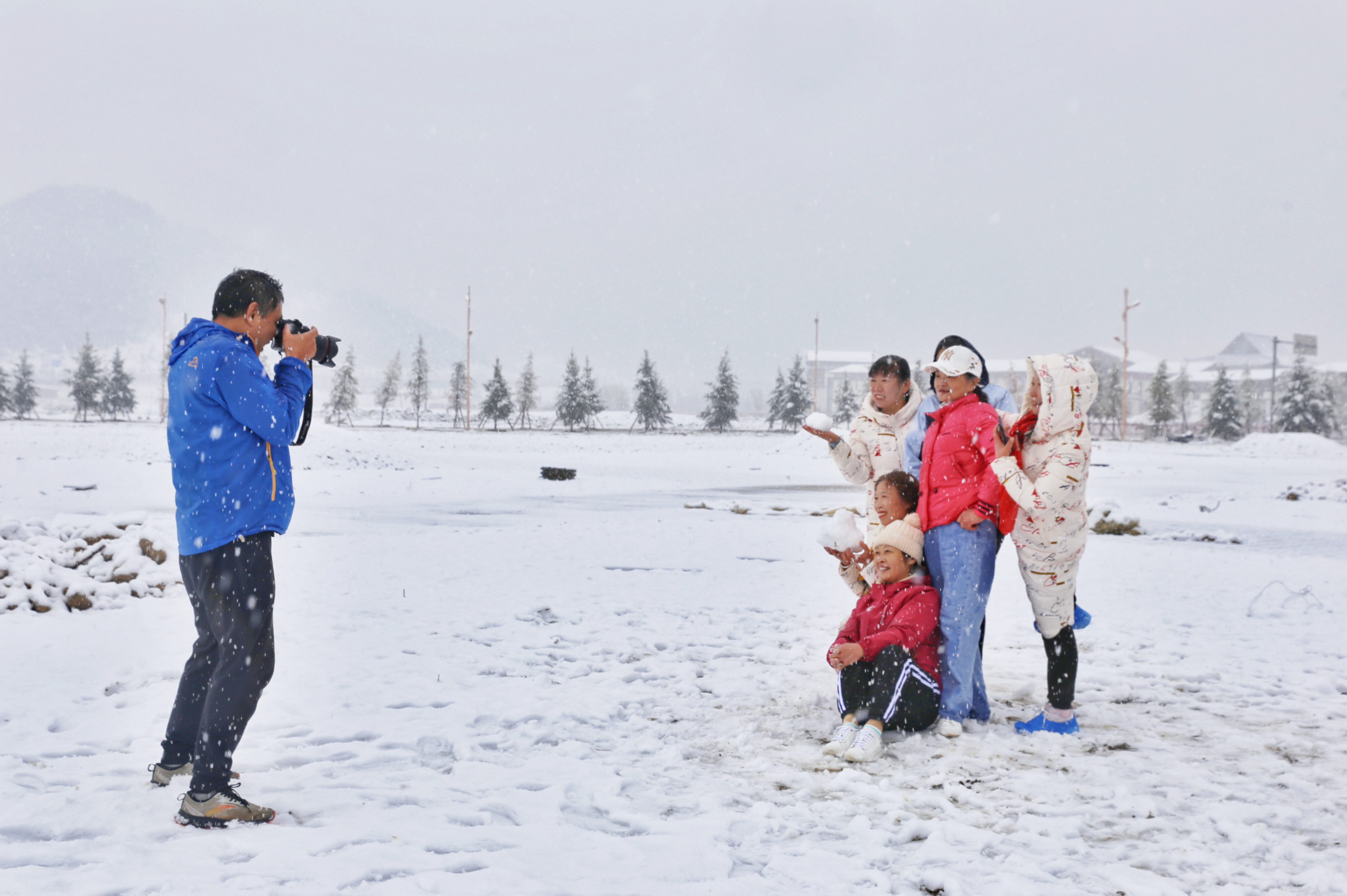 5月15日,香格里拉迎來一場夏雪,大雪紛飛的雪地中一群來自貴州的“嬢嬢團”正興奮的玩雪、拍照,“太有意思了,五月也能玩到雪,很難得?!苯衲?5歲的劉嬢嬢告訴記者,她們在香格里拉游玩三四天了,今天準備返程,出城路上被雪景吸引便索性再留出半天時間看雪。雪地中的嬢嬢們精氣十足,捏雪球、劈腿、下腰、打滾……大家紛紛擺出自己最拿手的pose拍照記錄下這令人驚喜的美景。
