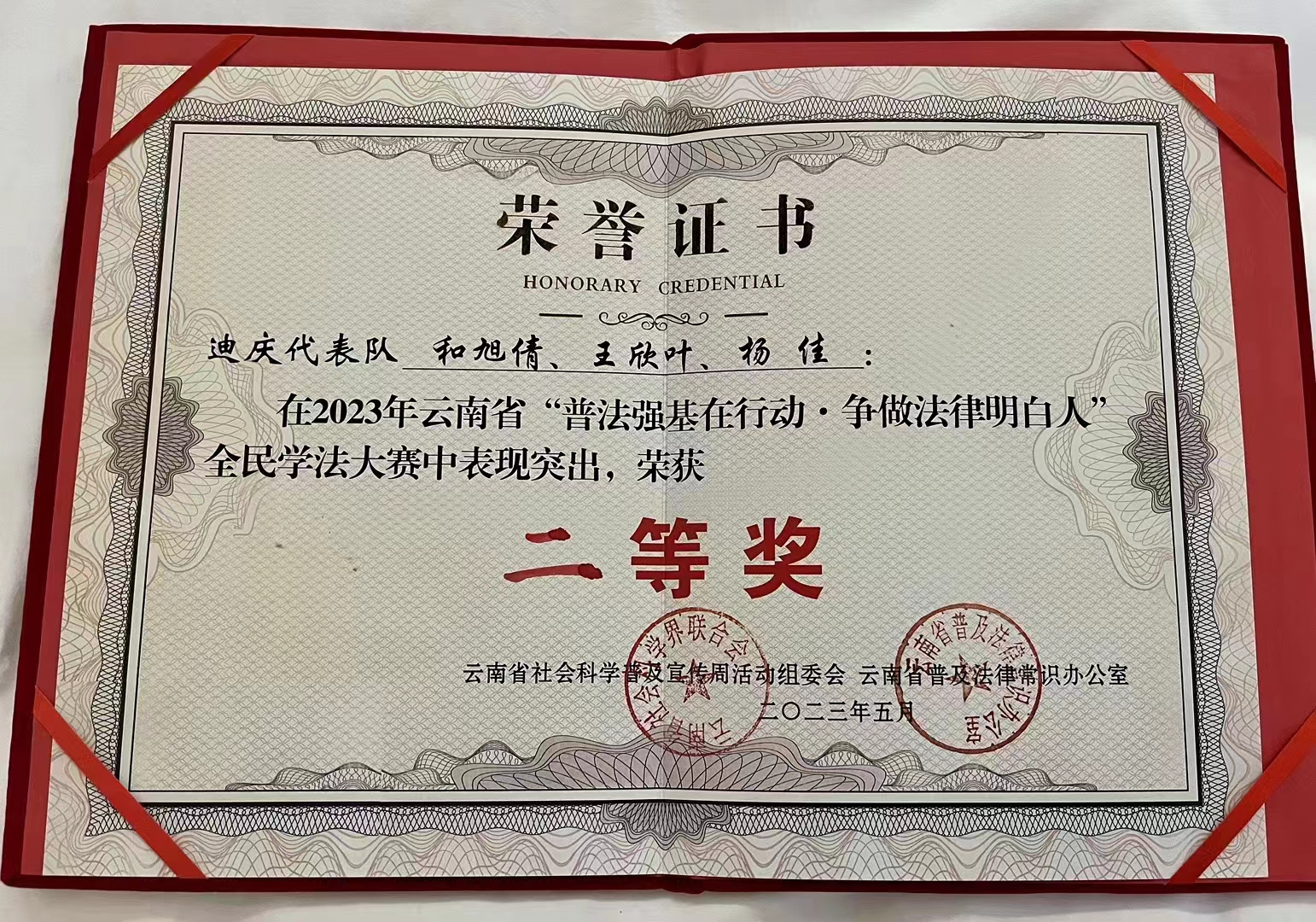 迪慶代表隊在“普法強基在行動·爭做法律明白人”全民學法大賽中榮獲二等獎