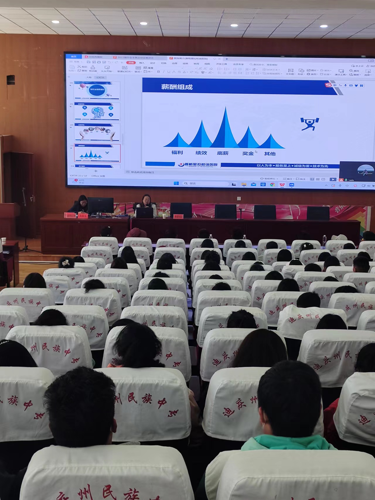 5月25日,迪慶州民族中等??茖W(xué)校招聘宣講會(huì)在該校報(bào)告廳舉辦。多家地方企業(yè)和學(xué)校畢業(yè)生參加宣講會(huì)。會(huì)上,企業(yè)招聘負(fù)責(zé)人從用人需求、員工福利待遇及職業(yè)發(fā)展路徑等方面進(jìn)行介紹,并結(jié)合學(xué)生的專業(yè)特質(zhì),對(duì)個(gè)人崗位的選擇提供了針對(duì)性的建議和指導(dǎo)。