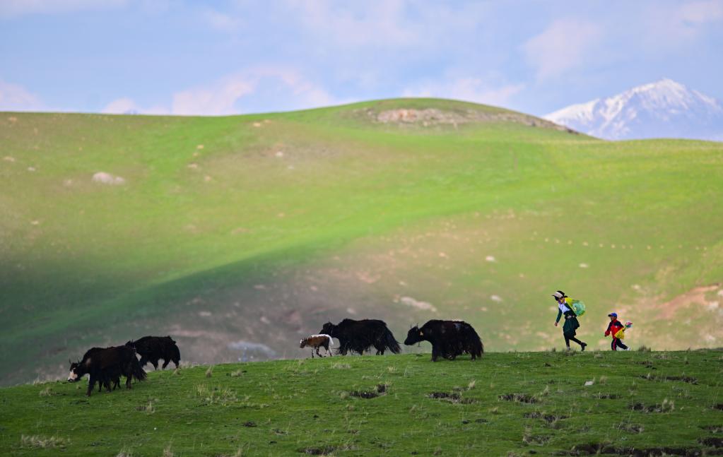 6月9日,在青海省黃南藏族自治州澤庫縣的高原草原上,當(dāng)?shù)啬撩裨诜拍痢?新華社記者 張龍 攝