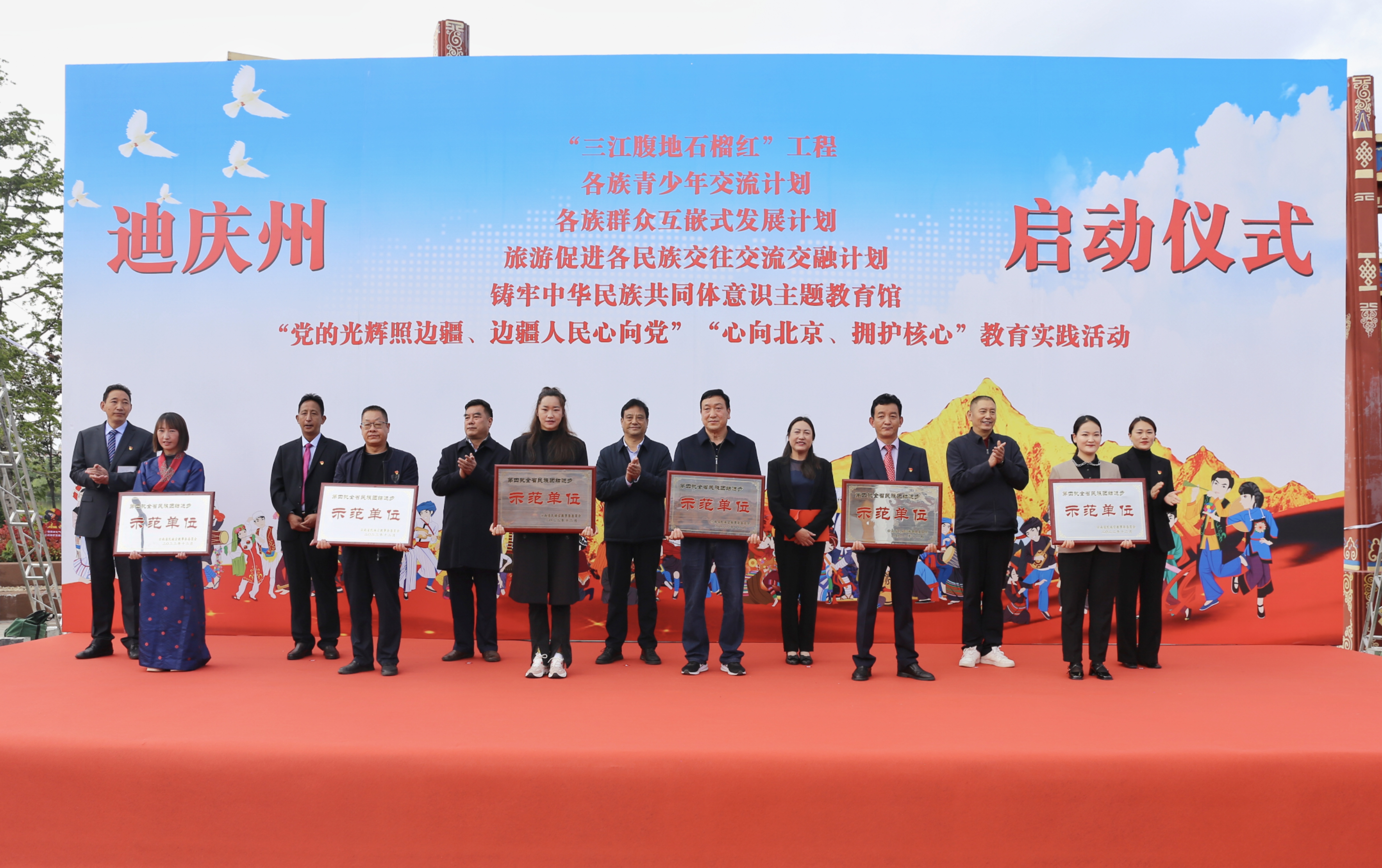 啟動儀式上,迪慶紅軍長征博物館被授予“云南省鑄牢中華民族共同體意識教育實(shí)踐基地”牌匾,并向2022年榮獲“云南省民族團(tuán)結(jié)進(jìn)步示范單位”的代表授牌。