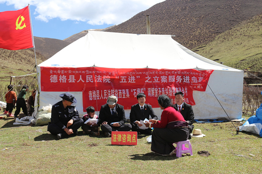 為了方便群眾訴訟,打通服務(wù)人民群眾“最后一公里”,該院馬尼干戈人民法庭不斷延伸司法服務(wù)觸角,著力建設(shè)具有自身特色優(yōu)勢的“楓橋式人民法庭”,充分發(fā)揮“馬背法庭”“帳篷法庭”流動設(shè)置的優(yōu)勢,牧民群眾游牧到哪里,流動法庭就搬到哪里,法官就走到哪里,合法高效審理、調(diào)解鄰里和家庭矛盾,減輕牧民群眾訴累,維護(hù)當(dāng)事人合法權(quán)益,有效維護(hù)牧區(qū)社會和諧穩(wěn)定,達(dá)到“審理一案,教育一片”的良好效果。
