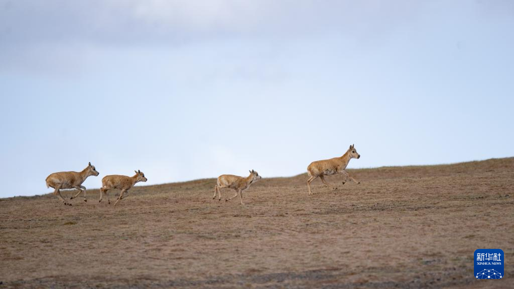 6月16日在可可西里卓乃湖區(qū)域拍攝的一群藏羚羊。 新華社記者 薛玉斌 攝