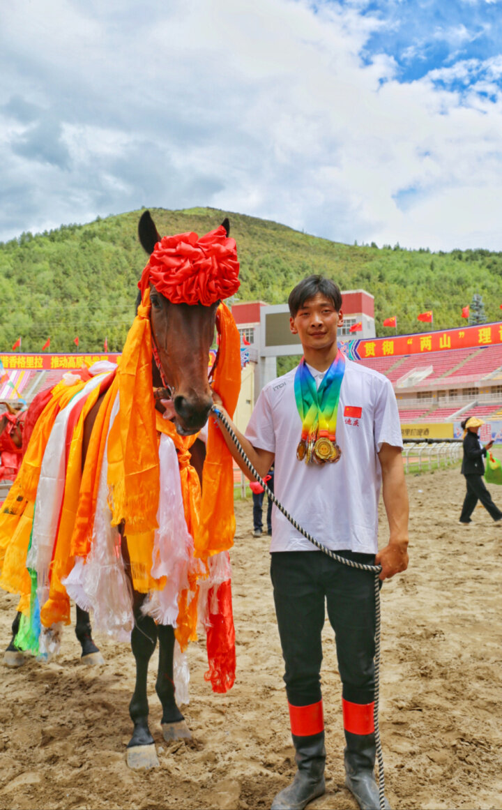 三天來,香格里拉五鳳山賽馬場內(nèi)人頭攢動,熱鬧非凡,州內(nèi)各族群眾和游客從四面八方聚集而來,為三年未能出現(xiàn)在香格里拉端午賽馬現(xiàn)場的駿馬和騎手們搖旗吶喊、加油助威,而來自州內(nèi)及友鄰州市的各代表隊(duì)則不負(fù)眾望,為大家呈現(xiàn)了一場場熱血沸騰的高水平馬術(shù)競技。“我從15歲開始參加比賽,今年是收獲最大的一次,連獲了4枚金牌,我很高興,期待明年的端午節(jié)能再次與來自不同地方的選手切磋。”23歲的知詩定主說道。此次,他獲得了甲組1000米走馬、甲組3000米走馬、乙組3000米走馬、丙組1000米走馬賽冠軍。與他并駕齊驅(qū)的嘎提七林則在甲組5000米速度賽、丙組5000米速度賽、甲組3000米速度賽、乙組3000米速度賽中獲得金牌。