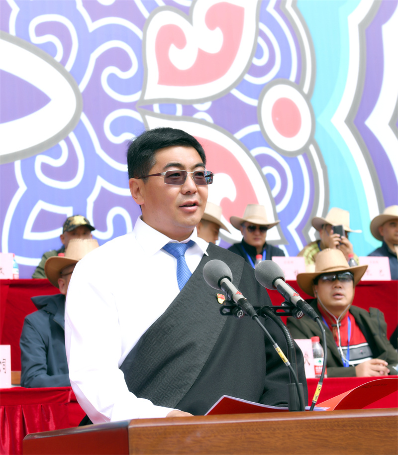 州委常委、香格里拉市委書記楊梓江致辭。他說,黨的十八大以來,在黨中央的親切關(guān)懷下,在省委、省政府和州委、州政府的堅(jiān)強(qiáng)領(lǐng)導(dǎo)下,香格里拉市堅(jiān)持推動(dòng)高質(zhì)量發(fā)展,如期實(shí)現(xiàn)脫貧摘帽,進(jìn)入“高速時(shí)代”“5G時(shí)代”,即將在全國涉藏州縣中率先進(jìn)入“動(dòng)車時(shí)代”,各項(xiàng)事業(yè)取得長足進(jìn)步,各族群眾的獲得感、幸福感、安全感明顯增強(qiáng),世界的“香格里拉”正逐步從藍(lán)圖走向現(xiàn)實(shí)。他表示,舉辦此次賽馬節(jié),是香格里拉市實(shí)施“潤心工程”文化育人行動(dòng),充分挖掘節(jié)慶文化資源,唱響主旋律、弘揚(yáng)正能量、提振精氣神,以文化人、以文育人的重要舉措。期望通過舉辦此次活動(dòng),有力促進(jìn)各民族交往交流交融,有力促進(jìn)“以文塑旅、以旅彰文”取得新成效,有力促進(jìn)大滇西旅游環(huán)線、大香格里拉旅游圈建設(shè)取得新進(jìn)展。