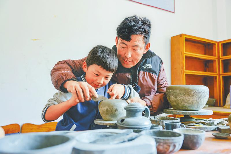 “我土生土長在這里,從父輩那里繼承手藝,不懂營銷,甚至不會漢語,做銷售很困難。”根呷火熱用藏語告訴記者,“現(xiàn)在好了,我每天只用干兩件事,制作土陶,教徒弟制作土陶。”