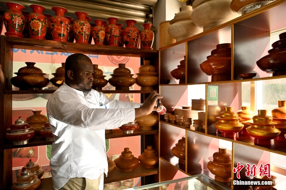 6月29日,青年代表拍攝木碗成品。中新社記者 李嘉嫻 攝