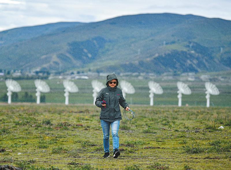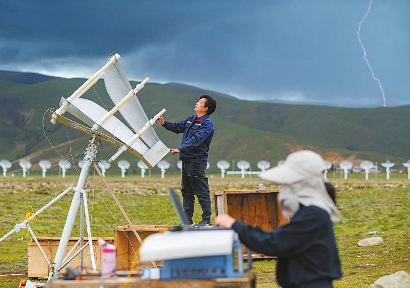 7月8日,四川省甘孜州稻城縣噶通鎮(zhèn)天氣說(shuō)變就變。在國(guó)家重大科技基礎(chǔ)設(shè)施——空間環(huán)境地基綜合監(jiān)測(cè)網(wǎng)(子午工程二期)圓環(huán)陣太陽(yáng)射電成像望遠(yuǎn)鏡項(xiàng)目建設(shè)現(xiàn)場(chǎng),中國(guó)電科第39研究所現(xiàn)場(chǎng)施工負(fù)責(zé)人葉愛林和同事正在進(jìn)行天線增益調(diào)試實(shí)驗(yàn)。突然,一道閃電劃過(guò)天際,轟隆隆的雷聲過(guò)后便是傾盆大雨,葉愛林和同事不得不停下手中正在進(jìn)行的實(shí)驗(yàn),臨時(shí)找地方躲雨。“這雨下不了多久,等雨停了,我們?cè)倮^續(xù)?!痹陧?xiàng)目建設(shè)現(xiàn)場(chǎng)已工作了480多天的他,被同事們稱作半個(gè)氣象“土專家”。他不僅能“察言觀色”看懂高原上的云彩,還能大差不差地推測(cè)出天氣變化。在海拔3800多米的噶通鎮(zhèn),許多科研人員像葉愛林一樣,默默奮戰(zhàn),希望在建的這一國(guó)家重大科技基礎(chǔ)設(shè)施能早日運(yùn)行,為中國(guó)空間科學(xué)事業(yè)的發(fā)展提供關(guān)鍵性的探索幫助及技術(shù)支持,使我國(guó)步入世界空間科學(xué)領(lǐng)域的先進(jìn)行列。