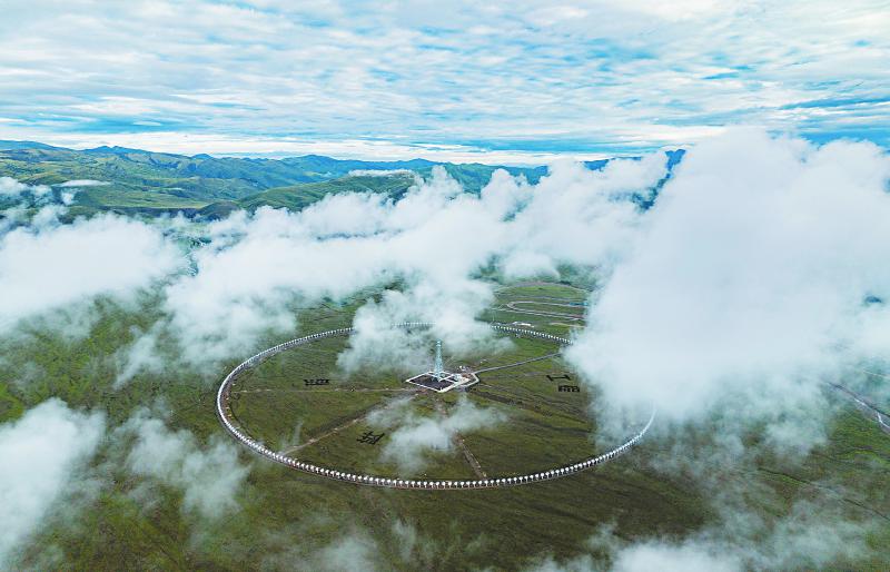 7月8日,晨霧下的圓環(huán)陣太陽(yáng)射電成像望遠(yuǎn)鏡項(xiàng)目狀如一顆巨大的“千眼天珠”。