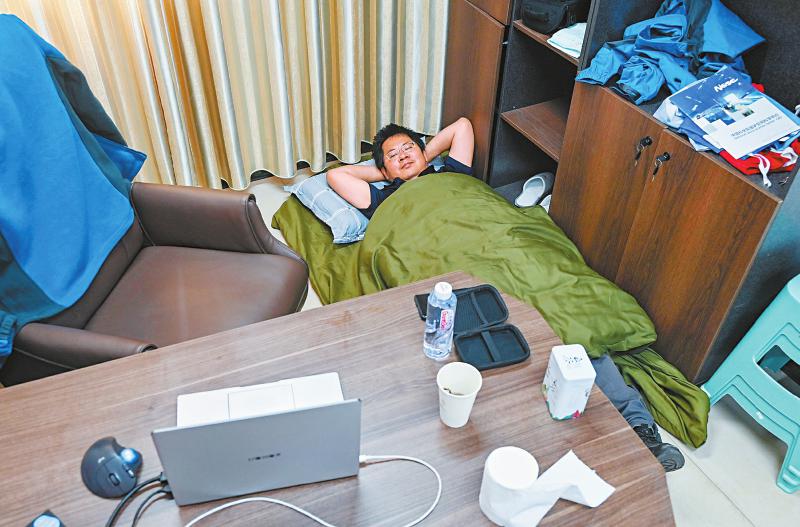 7月8日中午,子午工程二期圓環(huán)陣太陽(yáng)射電成像望遠(yuǎn)鏡項(xiàng)目副主任設(shè)計(jì)師武林抓緊時(shí)間在辦公室午休。
