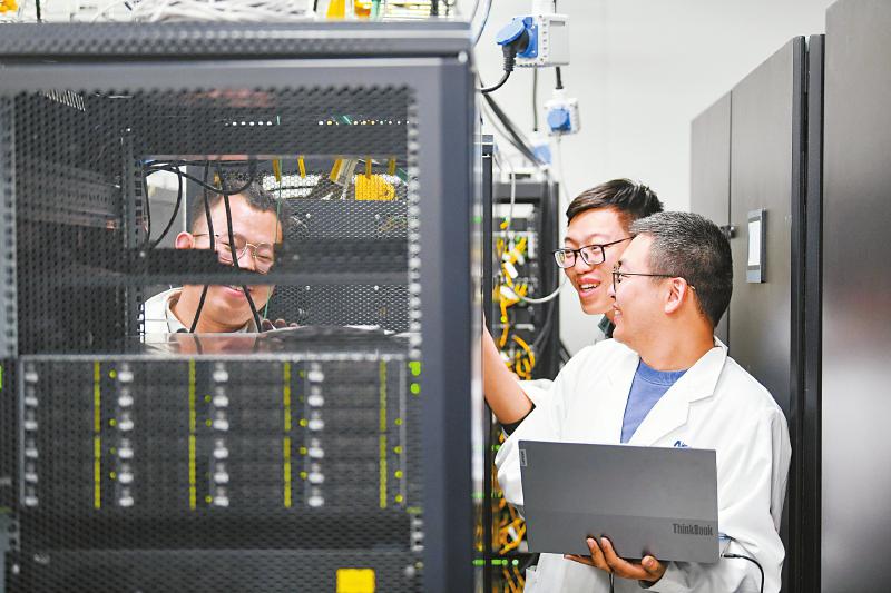 7月8日,中國(guó)電科第16研究所工程師張錚(右前)與同事一起負(fù)責(zé)調(diào)試天線。
