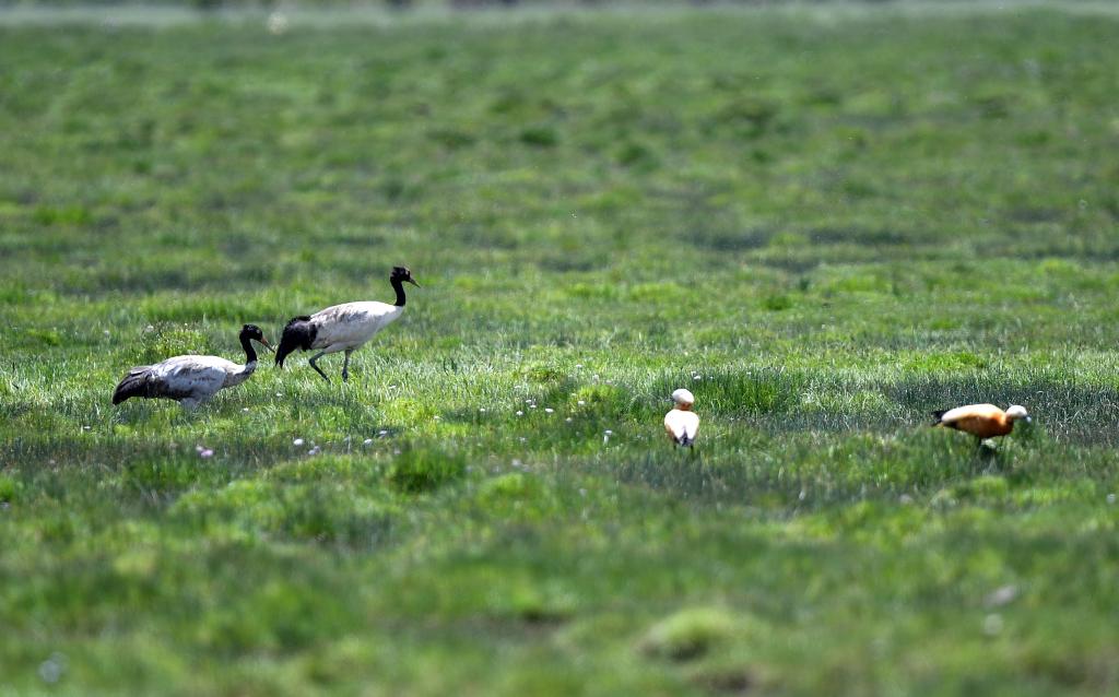 “黑頸鶴和斑頭雁數(shù)量現(xiàn)在肉眼可見地增多了?!辈湃实┲苷f,草長(zhǎng)得好,濕地面積不斷擴(kuò)大,來到這里的鳥類才會(huì)不斷增加。