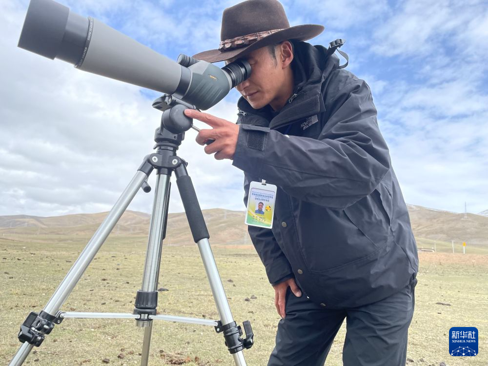 濕地生態(tài)管護(hù)員在青海隆寶國(guó)家級(jí)自然保護(hù)區(qū)觀(guān)察野生動(dòng)物。新華社記者 李琳海 攝