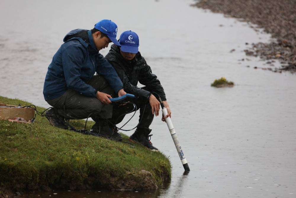 來自長(zhǎng)江科學(xué)院河流研究所的科考隊(duì)員徐志成和楊緒海,每到一個(gè)采樣點(diǎn)就采集河道床沙和懸沙樣品,測(cè)量河寬、水深、比降、流速,對(duì)比此前科考觀測(cè)數(shù)據(jù),分析長(zhǎng)江源區(qū)河道水沙輸移特性和河床演變情況。