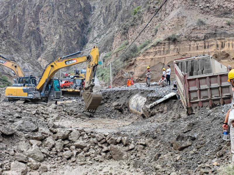 近日,受持續(xù)強(qiáng)降雨影響,G214線(xiàn)佛山鄉(xiāng)古水村附近K1911+750處發(fā)生泥石流災(zāi)害,造成交通中斷。德欽公路分局立即啟動(dòng)汛期保通應(yīng)急預(yù)案,第一時(shí)間組織應(yīng)急搶險(xiǎn)人員趕赴現(xiàn)場(chǎng),4臺(tái)裝載機(jī)、2臺(tái)挖掘機(jī)、4臺(tái)運(yùn)輸車(chē)全力投入搶通工作中,并協(xié)同交警實(shí)行交通管制,疏散滯留車(chē)輛。經(jīng)過(guò)多部門(mén)搶險(xiǎn)保通作業(yè),受阻路段順利實(shí)現(xiàn)半幅通行。圖為現(xiàn)場(chǎng)正在清理鏟運(yùn)泥沙。