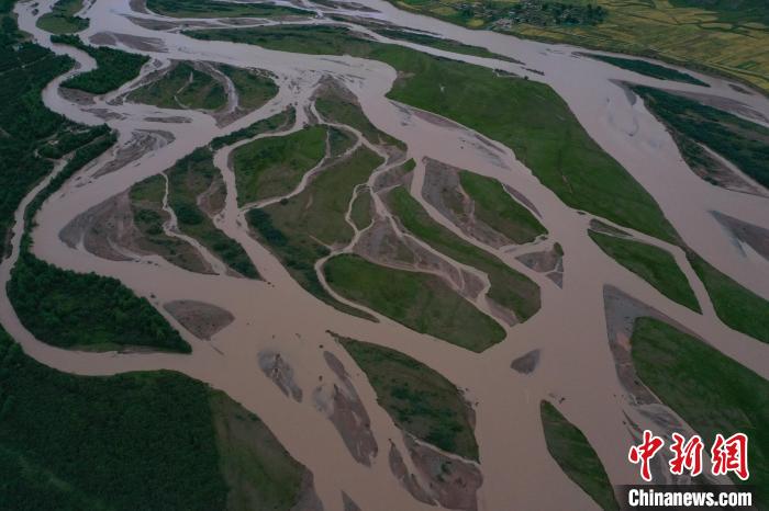 航拍青海省玉樹藏族自治州囊謙縣境內(nèi)的扎曲河網(wǎng)狀水系。馬銘言 攝