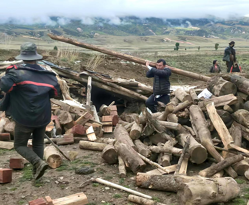 圖為李章權(quán)幫助村民搬運木料。