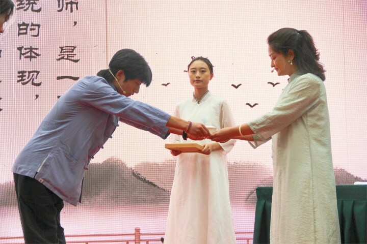 隨后,教師和同學(xué)們集體宣讀誓言,慷慨洪亮的聲音在宣告他們有信心做好一名稱職的人民教師、優(yōu)秀的學(xué)生。學(xué)生代表的發(fā)言充滿朝氣與活力,胸懷理想與信念,展現(xiàn)出同學(xué)們磨礪自我、奮斗青春的信心與抱負(fù)。教師代表的發(fā)言如良師益友娓娓道來(lái),用榜樣的力量和長(zhǎng)者的親切,為同學(xué)們指點(diǎn)迷津、加油鼓勁,激勵(lì)同學(xué)們胸懷遠(yuǎn)志、堅(jiān)毅卓絕、奮發(fā)進(jìn)取、只爭(zhēng)朝夕!隨后,同學(xué)們?cè)谥鞒秩说闹敢旅C整衣冠、向老師鞠躬行禮,寓意此后正式踏入學(xué)門,明志于四方。