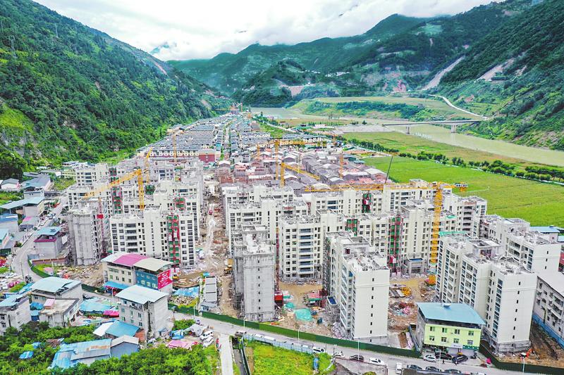 9月初,四川省雅安市石棉縣王崗坪鄉(xiāng)旅游集鎮(zhèn)項目現(xiàn)場,塔吊林立、機械轟鳴。這里計劃新建宅基地住宅174棟、高層住宅22棟,并配套建設(shè)應(yīng)急避難廣場等附屬設(shè)施,將集中安置受災(zāi)群眾644戶、2391人。目前,項目已完成主體建設(shè),即將進入分房階段。