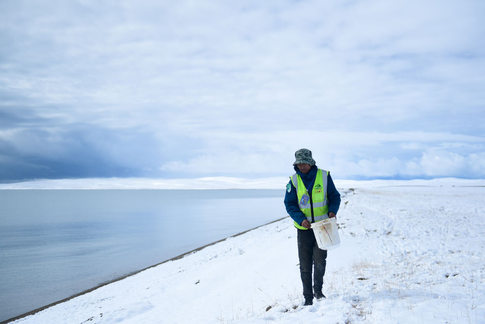 自三江源國家公園體制試點開始以來,更登堅措和許多牧民一樣,放下牧鞭,成了一名生態(tài)管護(hù)員。如今,他每天的主要工作是撿拾垃圾、巡護(hù)湖泊和草原、保護(hù)野生動物?!澳苡米约旱牧α孔尲覉@變得越來越美,很有成就感!”