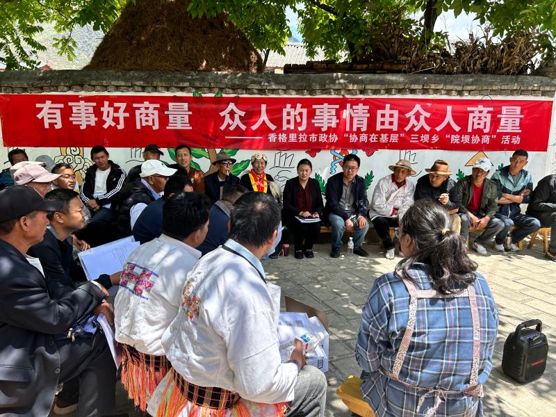 2023年4月26日,香格里拉市政協(xié)在三壩鄉(xiāng)開(kāi)展“協(xié)商在基層”“院壩協(xié)商”活動(dòng)。
