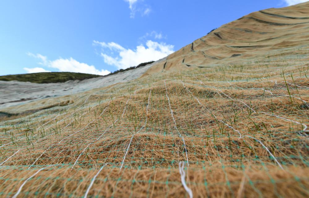這種名為“椰絲毯”的環(huán)保型材料,是將經過加工的椰殼纖維,鉤織網格制成的毯狀材料。“椰絲毯結構緊密、防腐蝕性強,能有效緩解濺蝕,抑制水土流失,有優(yōu)良的邊坡防護功效。同時它還具有生物降解特征,‘完成使命’后自然分解成有機肥?!比魻柹w縣自然資源局生態(tài)修復股工作人員畢洪斌說,目前“椰絲毯”多應用于植被恢復和環(huán)保治理領域。