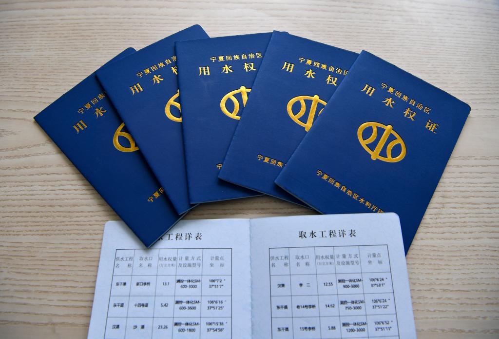 寧夏吳忠市利通區(qū)高閘鎮(zhèn)部分村莊的用水權(quán)證(5月24日攝)。新華社記者馮開華 攝