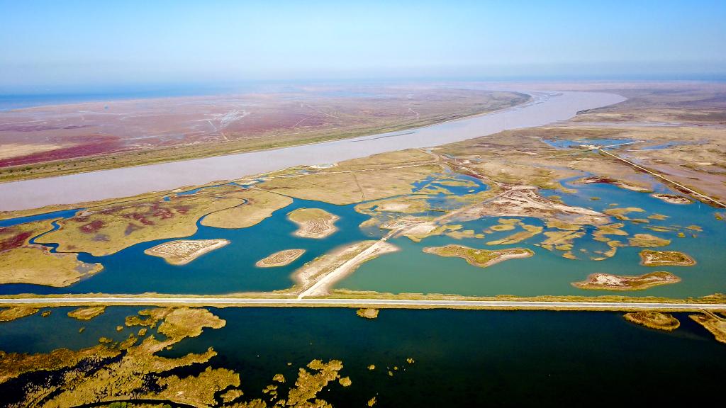 近年來,黃河三角洲國家級自然保護(hù)區(qū)建成“引、輸、蓄、排”科學(xué)生態(tài)補(bǔ)水體系,同時(shí)著力構(gòu)建“河—陸—灘—?!边B通體系,連通水系115公里,疏通潮溝76公里,恢復(fù)黃河與海洋的水文連通。原先的光板地、鹽堿灘,變成了水草豐茂、生物多樣性富集的大濕地。