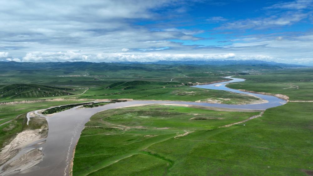 黃河流經(jīng)甘南藏族自治州瑪曲縣境內(nèi)(7月6日攝)。新華社記者 方欣 攝