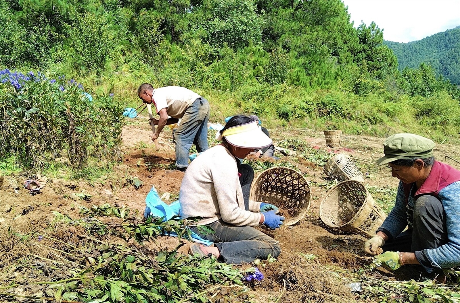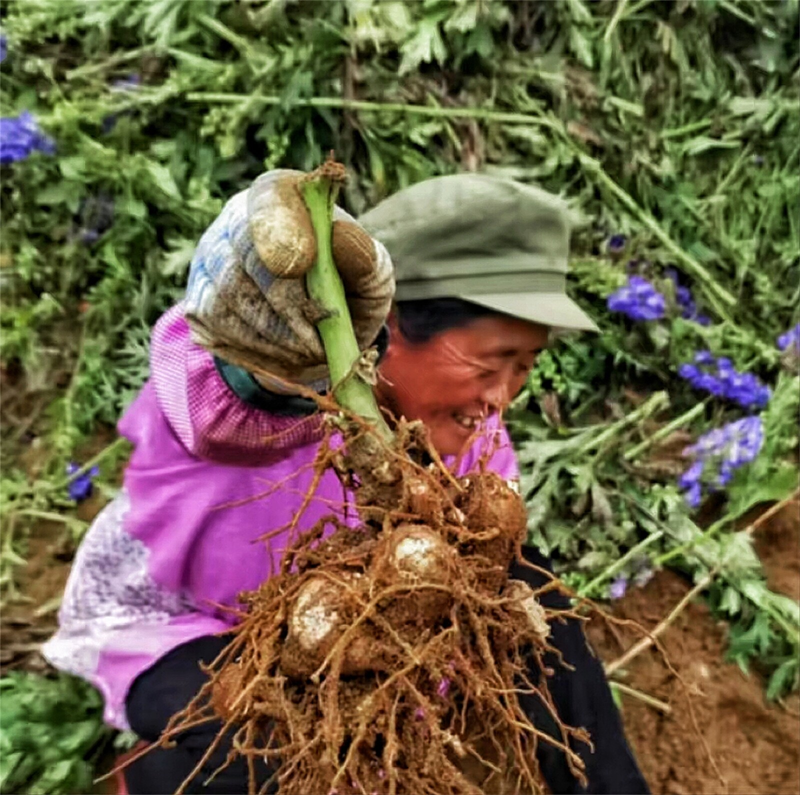 近日,維西傈僳族自治縣攀天閣鄉(xiāng)美洛村400余畝附子喜獲豐收。田間地頭,村民們?nèi)宄扇?,通力協(xié)作,將一顆顆采挖出來(lái)的附子收集成籮,集裝成袋,看著眼前的一袋袋附子,村民們都樂得合不攏嘴?!敖衲旮阶赢a(chǎn)量很高呢,按照去年的市場(chǎng)價(jià)今年一畝最多可有2萬(wàn)收入”美洛村副主任和麗新說。